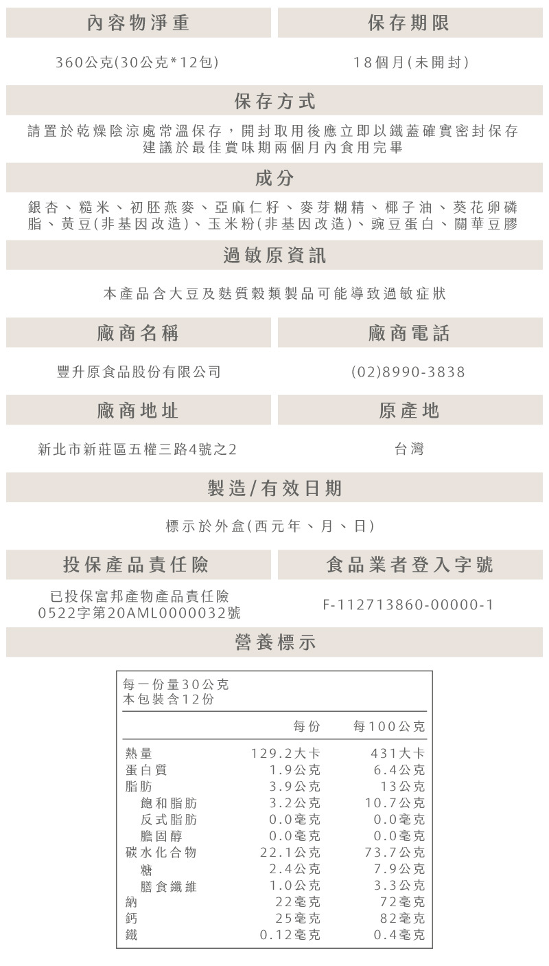 ⦿ 一盒12入,每包30公克